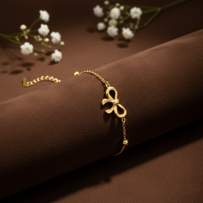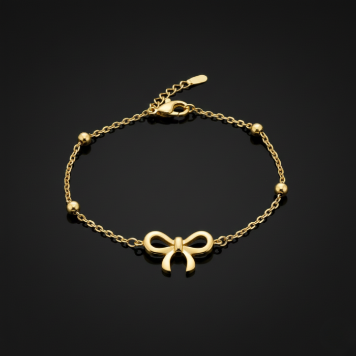 Be the first to review “18K Gold Plated Bow Charm Bracelet – Dainty Gold Bead Chain with Minimalist Ribbon Motif – Elegant Coquette Aesthetic Jewelry – Adjustable Gift for Her”