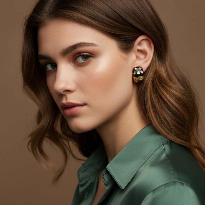 Be the first to review “Black & Gold Enamel Stud Earrings for Women | Luxury Motif Design | Statement Designer Jewelry”
