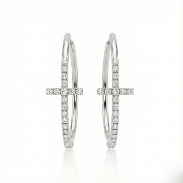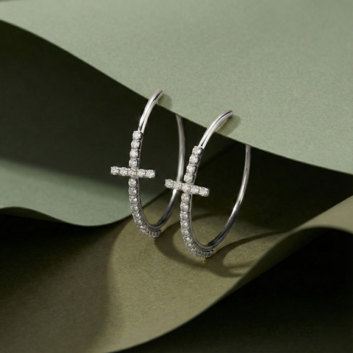 Be the first to review “Silver-Tone Cross Hoop Earrings for Women | Crystal-Studded Designer Statement Hoops | Elegant Modern Party & Evening Wear Jewelry”